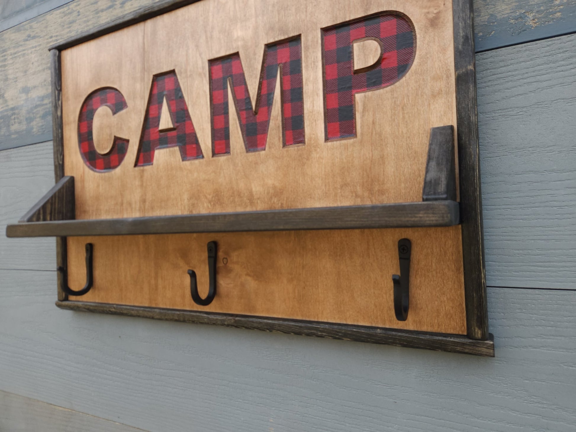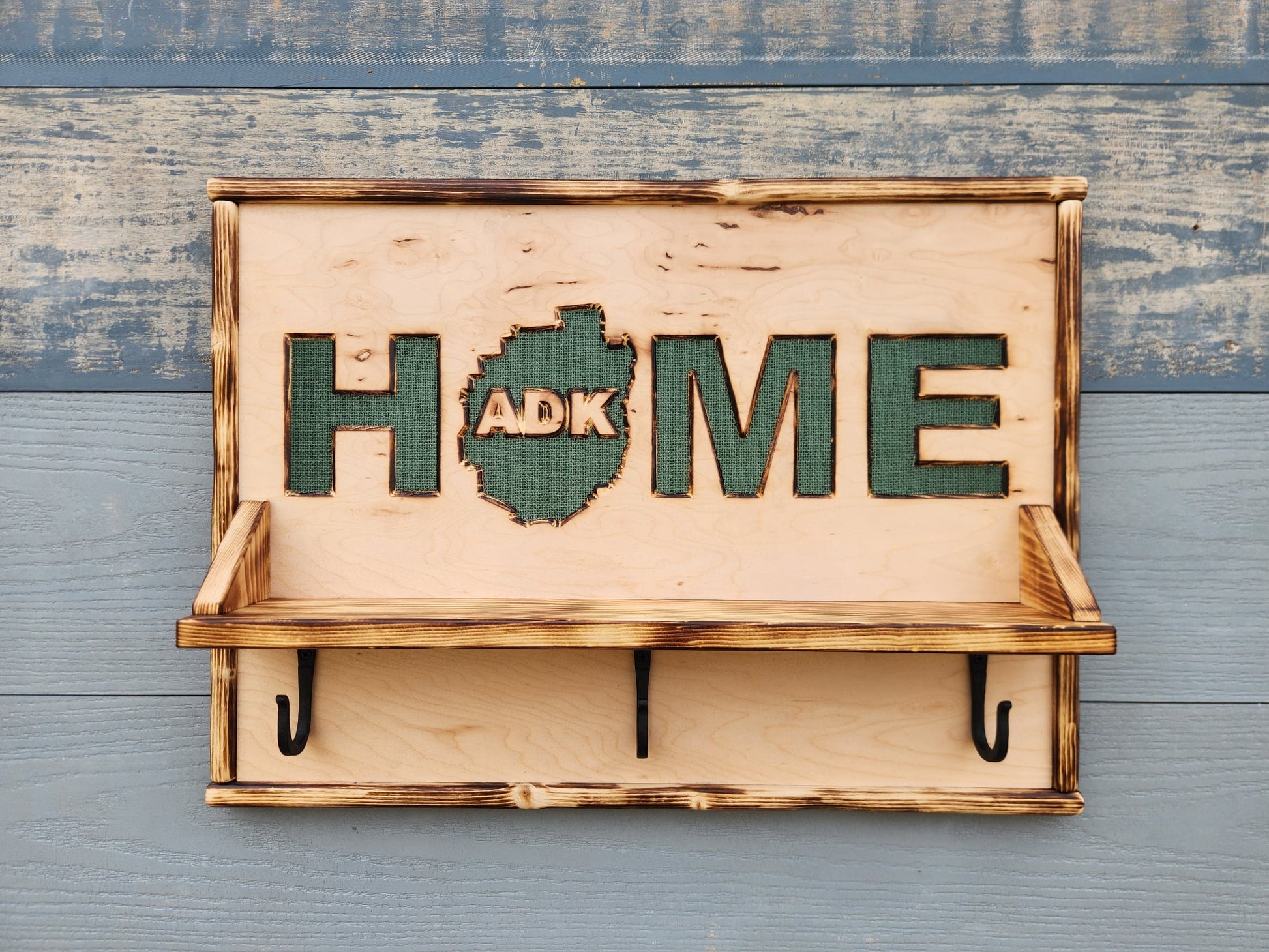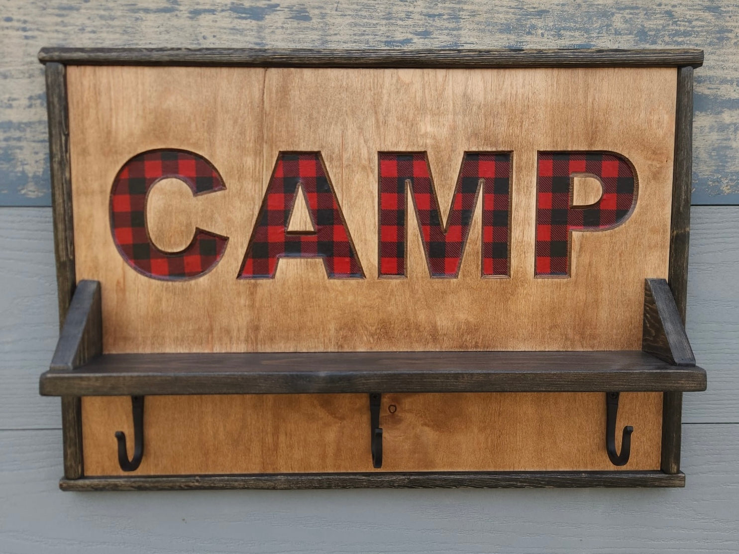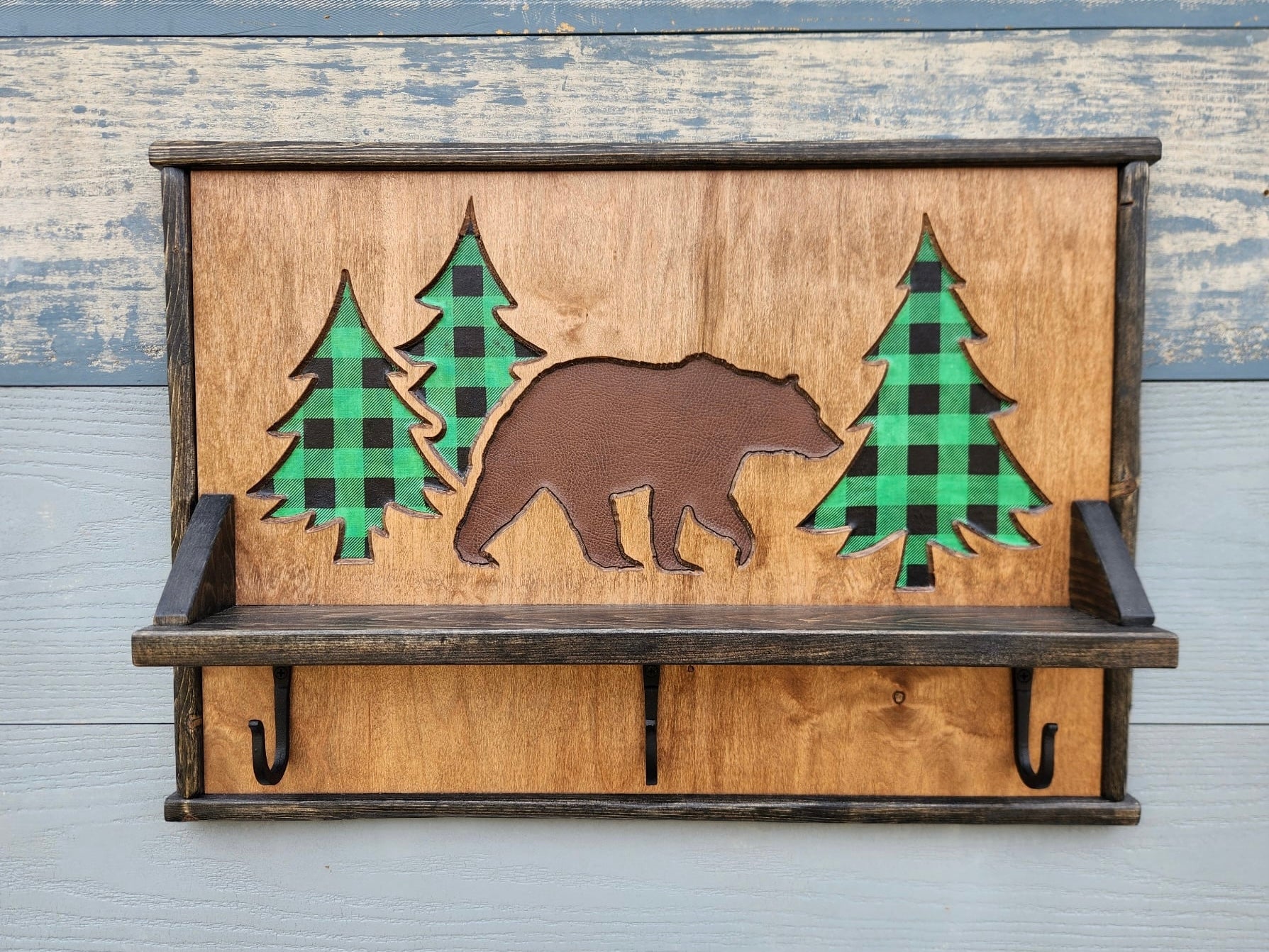 This sturdy shelf is perfect for organizing and displaying your belongings. The carved wood adds a touch of rustic elegance, while the hooks provide convenient storage for hanging items.