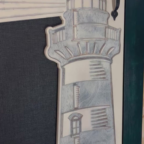 Illuminate your entryway with the charm and elegance of our Custom Carved Lighthouse Screen Door. This beautifully handcrafted door showcases a detailed lighthouse scene, capturing the timeless allure of coastal beacons and adding a touch of maritime magic to your home.