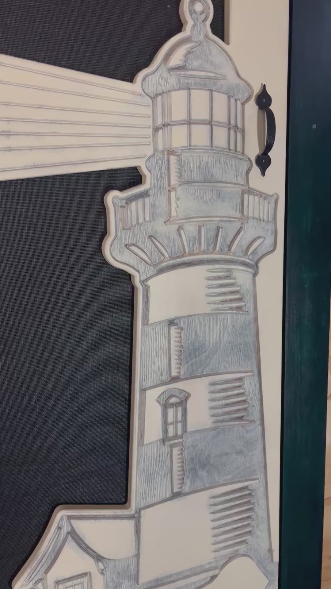 Embrace the coastal charm of a lighthouse with our Custom Carved Lighthouse Screen Door. Order now and transform your entryway into a stunning maritime-inspired masterpiece.